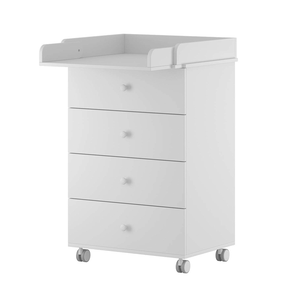 Комод оборудован четырьмя ящиками на шариковых направляющих. После того, как ребенок подрастет, данный предмет мебели можно будет использовать в качестве классической мебели, а пеленальный столик превратится в дополнительную полочку для разных аксессуаров.