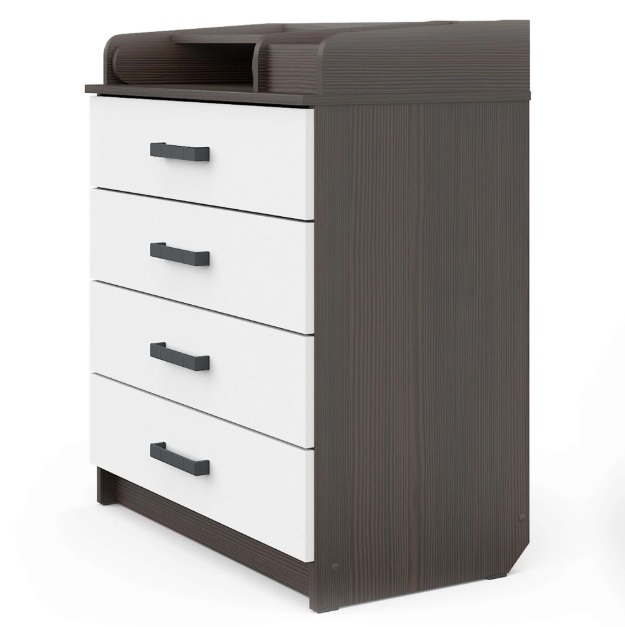 Пеленальная поверхность размером 68 см в глубину и 52,4 см в ширину создает просторное и безопасное место для переодевания и ухода за младенцем. Высота стола 82 см позволяет родителям работать с ребенком, не напрягая спину. Справа от пеленальной зоны предусмотрено отделение для хранения, где все необходимое — от подгузников до крема — всегда будет под рукой.