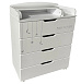 Бренд Indigo представляет практичное и стильное изделие, которое обязательно пригодится родителям новорожденного малыша. Этот комод идет в комплекте с откидной пеленальной поверхностью. В нем есть четыре вместительных ящика для постельных принадлежностей и колесики для удобного перемещения по комнате.