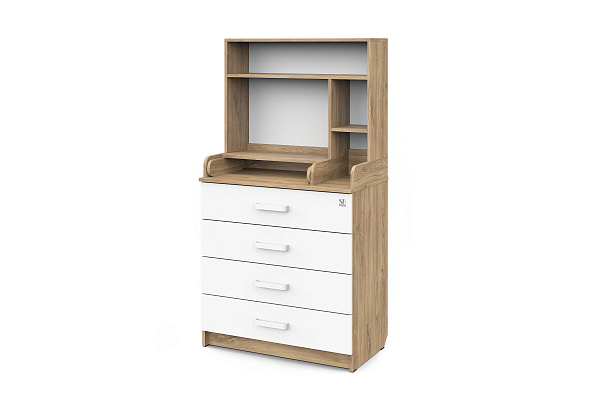 Sweet Baby Albero New — это обновленный пеленальный комод, сочетающий вместительность, функциональность и элегантный дизайн. Его главная особенность — складной пеленальный столик, который легко раскладывается, создавая просторную поверхность с бортиками безопасности для ребенка, и компактно убирается, освобождая место для хранения. Над комодом предусмотрены дополнительные полки, идеальные для размещения детской косметики, игрушек или ночника. Четыре широких ящика на роликовых направляющих обеспечивают плавное и бесшумное открывание, вмещая все необходимое для малыша.