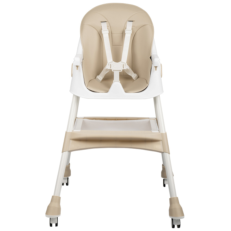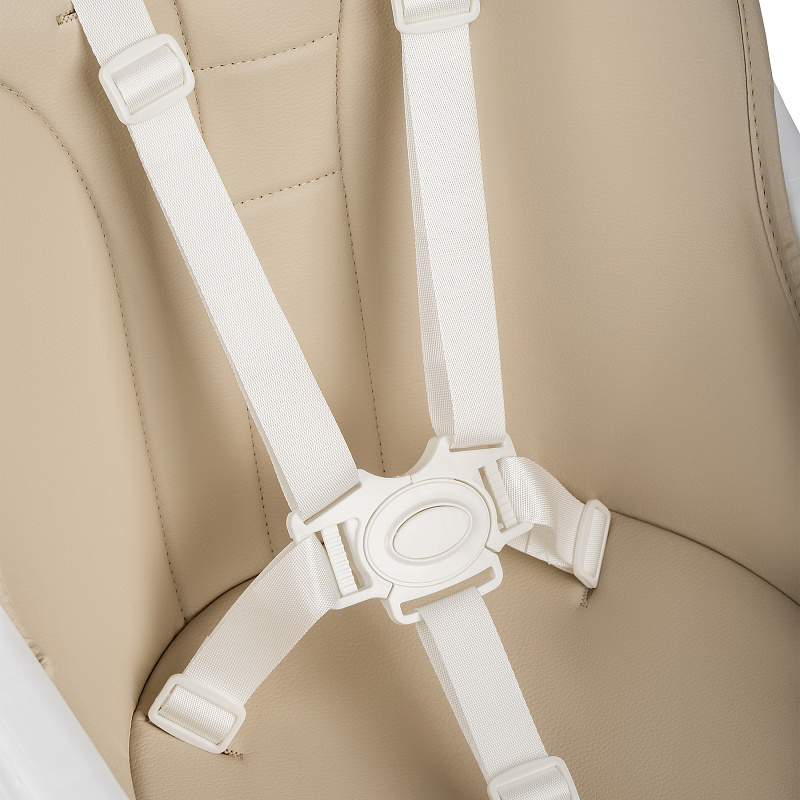 Стульчик оснащен поворотными колесами с индивидуальными стопорами на каждом колесе для легкости перемещения и одновременно устойчивости. Надежную фиксацию ребенка обеспечивают 5-точечные ремни безопасности.