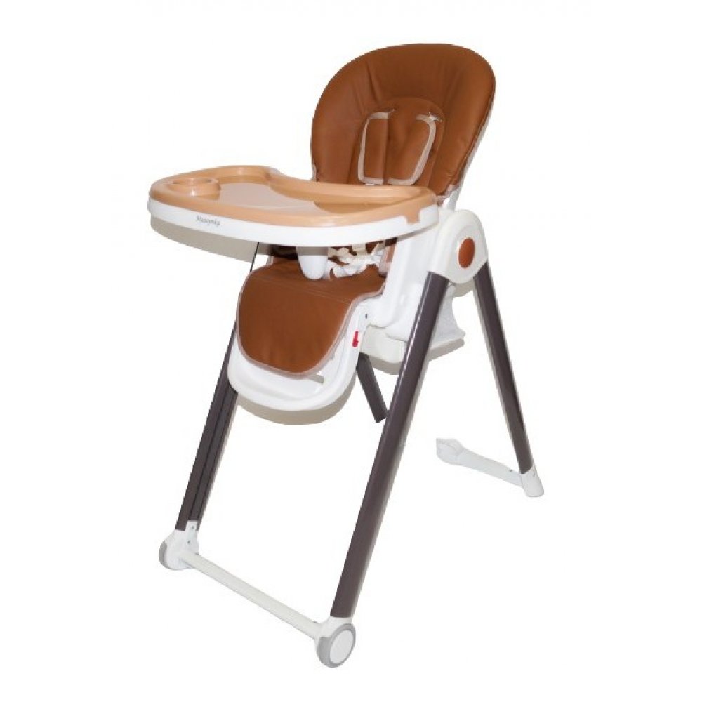 Безопасность стульчика обеспечивают 5-точечные ремни безопасности и съемная перемычка между ножками, которая не дает ребенку соскользнуть с сиденья. Чехол стульчика снимается для чистки. Подножка также регулируется по высоте и углу наклона. Под сиденьем расположена удобная корзина для игрушек, предметов гигиены. Материал изготовления — пластик.