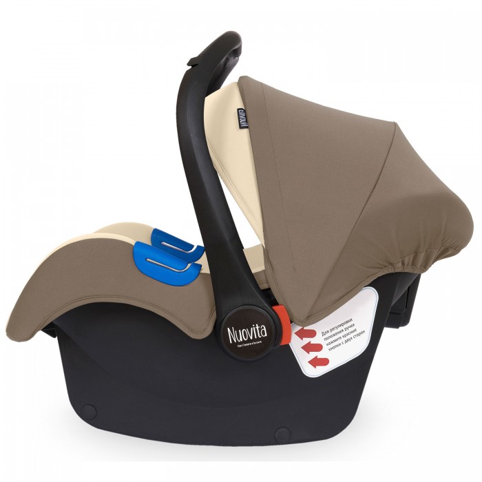 Обивка автокресла выполнена из устойчивого к износу и огнеупорного текстиля, у которого имеются антибактериальные свойства. Внутри все продублировано поролоном, поэтому ребенок нигде не испытывает дискомфорта. Обивку можно снимать и стирать, при этом внешний вид не портится. Капор в автолюльке защищает ребенка от прямых солнечных лучей. Ручка регулируется в четырех положениях.