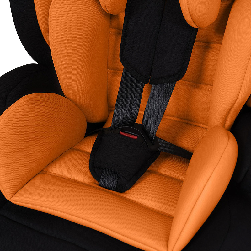 Спинка высокая, кресло дополено объемными изогнутыми боковинами, которые эффективно защищают юного пассажира. Эргономичный подголовник защищает голову и шею и регулируется по высоте в пяти положениях (55-77 см). Кресло оснащено 5-точечными ремнями безопасности, надежно фиксирующими ребенка в кресле. Автокресло устанавливается в автомобиле по ходу движения. Само кресло крепится на автомобильном сиденье 3-точечными штатными ремнями. До 4 лет ребенок пристегивается ремнями автокресла, после — автомобиля.