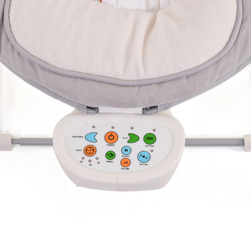 Шезлонг-электрокачели Nuovita Cullare оснащен функцией виброукачивания с двумя скоростями. Таймер позволяет устанавливать время работы устройства, а громкость звука регулируется.