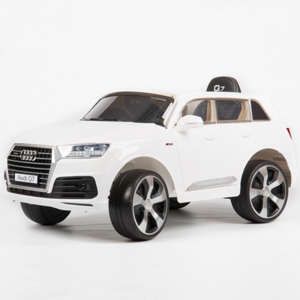 Электромобиль Barty Audi Q7 Quattro Lux оснащен высоким лобовым стеклом, которое оберегает водителя от камушков, вылетающих из-под колес. В салоне расположено одно сиденье с износостойким покрытием из эко-кожи. На панели приборов есть FM-радио, а также различные разъемы для подключения смартфонов и других гаджетов. Еще один плюс модели — удобное управление для родителей с помощью пульта через Bluetooth соединение.