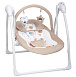Музыкальный блок включает 15 встроенных мелодий и 5 звуков природы, а также регулировку громкости, что позволяет подобрать комфортный звуковой фон. Управлять режимами можно с помощью пульта дистанционного управления, не подходя вплотную к качелям. Дополнительно предусмотрена дуга с мягкими съемными игрушками, положение которой можно регулировать, чтобы заинтересовать малыша. Пятиточечные ремни безопасности надежно фиксируют ребенка и обеспечивают безопасное положение во время качания.
