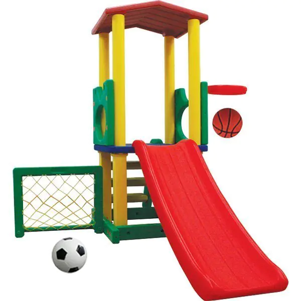 • футбольные ворота и кольцо для забрасывания мяча могут быть установлены с любой стороны горки