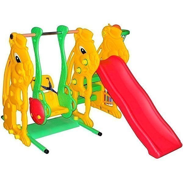 Подарите малышам сказочное детство, в котором веселые забавы никогда не заканчивается. Большой игровой комплекс RT Заяц Geburt с горкой, баскетбольным кольцом и качелью – это надежная конструкция с продуманным дизайном и функционалом. Качели оснащены широким сиденьем. Для удерживания маленького озорника внутри него используются ремни безопасности. Рядом находится металлофон, на котором можно сыграть любимую мелодию. С таким игровым комплексом родителям будет легко организовать детям веселый досуг. Игровая зона выполнена из суперпрочной пластмассы, выдерживающей до восьмидесяти килограммов нагрузки.
