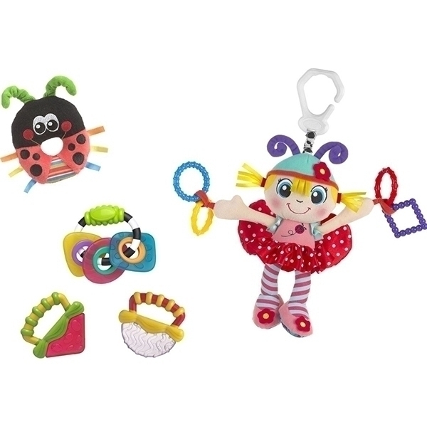 Этот симпатичный набор с красочными развивающими игрушками бюудет хорошим подарком для вашего маленького ангелочка. Тут есть все необходимое для увлеченного и полезного времяпрепровождения: развития основных навыков и обучения карапуза. Он придет в восторг от божьей коровки с оригинальными ножками, которые можно грызть. Также младенцу «придутся по вкусу» грызунки из мягкого термопластика, которые помогают минимизировать неприятные ощущения в ротовой полости во время прорезывания первых зубов. Прорезыватели обладают охлаждающим эффектом благодаря наличию специальной жидкости внутри, достаточно предварительно положить игрушку ненадолго в холодильник. Игровой набор Playgro Божья Коровка сделан с заботой о самых маленьких детках. Необычные формы, яркие цвета и разнофактурные материалы изделий надолго займут внимание малыша и вызовут у него нескрываемый интерес.