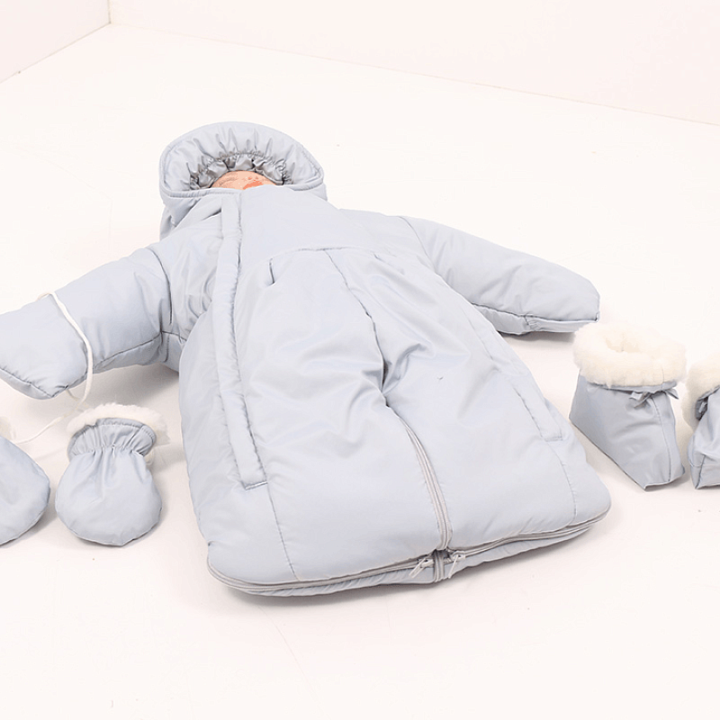 Комбинезон для детей с рождения Марти, актуален как в зимнее время года, так и осеннее. Благодаря внутреннему съёмному меховому комбинезону, Вы сможете превратить зимний конверт в более легкий. Наружный слой комбинезона обладает водоотталкивающими свойства и при этом пропускает воздух. В комплект входят рукавички и меховые ботинки для малыша. Молния, размещенная по периметру комбинезона с двух сторон, позволяет удобно помещать в него малыша.