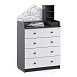 Все ящики комода помещены на шариковые направляющие. Ящики выдвигаются плавно и бесшумно. Специально для этой модели взяты черные металлические матовые ручки-кнопки. У верхней полочки есть три положения по высоте, которые при необходимости снимаются.