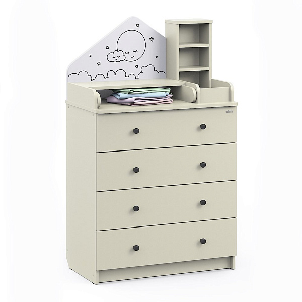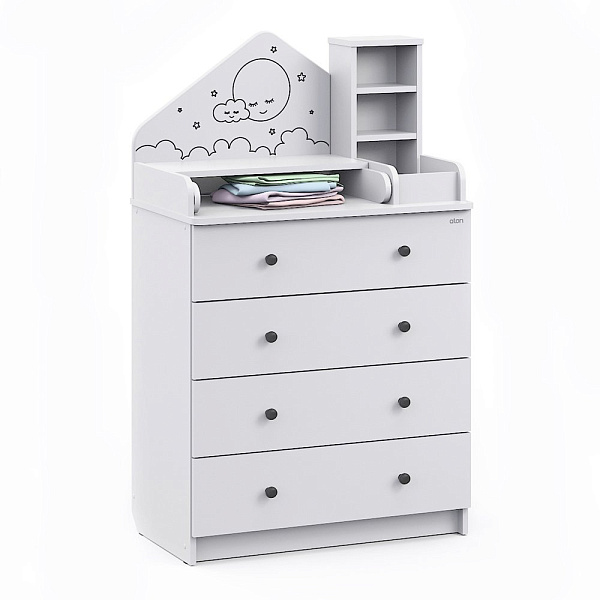 Комод-трансформер Атон Сириус ALF 804 ЛДСП — оригинальная мебель, которая сделает детскую комнату или уголок в доме удобным и уютным. Комод способен превращаться в детский столик. Есть пеленальный столик, который в разложенном виде превращается в удобное место для гигиенических процедур. Когда малыш подрастет, пеленальный столик без труда демонтируется. Для средств гигиены предусмотрены удобные небольшие полочки. У мамы всегда все будет под рукой. Дизайн комода классический, украшенный интересным «домиком», добавляющим мебели оригинальности.