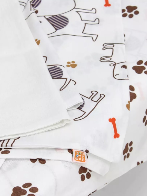 Этот комплект постельного белья для новорожденного состоит из трех предметов. В этой серии представлены пододеяльники с принтами дизайнерского типа в двух вариантах — с веселыми собачками и их следами на тыльной стороне, а также с царскими коронами и звездочками с другой стороны.