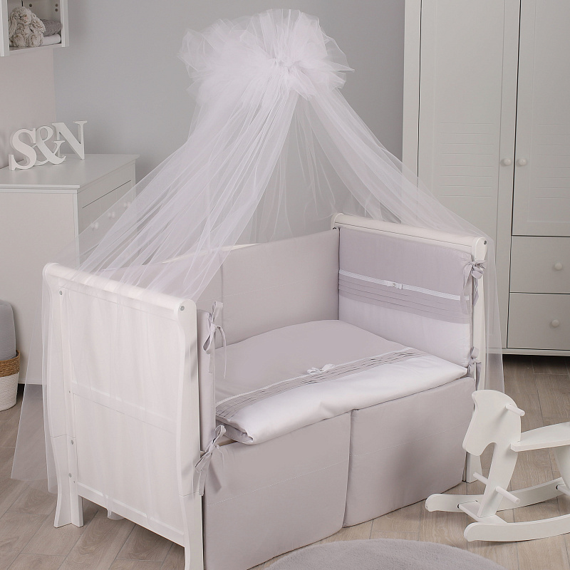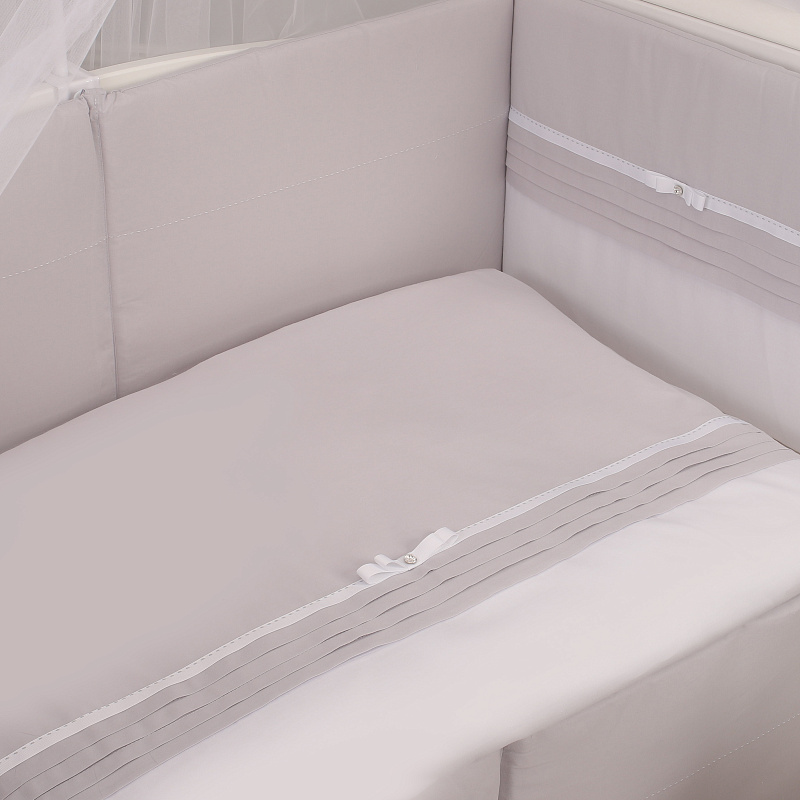КПБ Crystal можно пользоваться в кроватках со спальными местами — 120x60 см и 125x65 см. Чехлы с бортиков снимаются, застегиваются на молнию, стираются. Набор комплектуется легким гипоаллергенным одеялом.