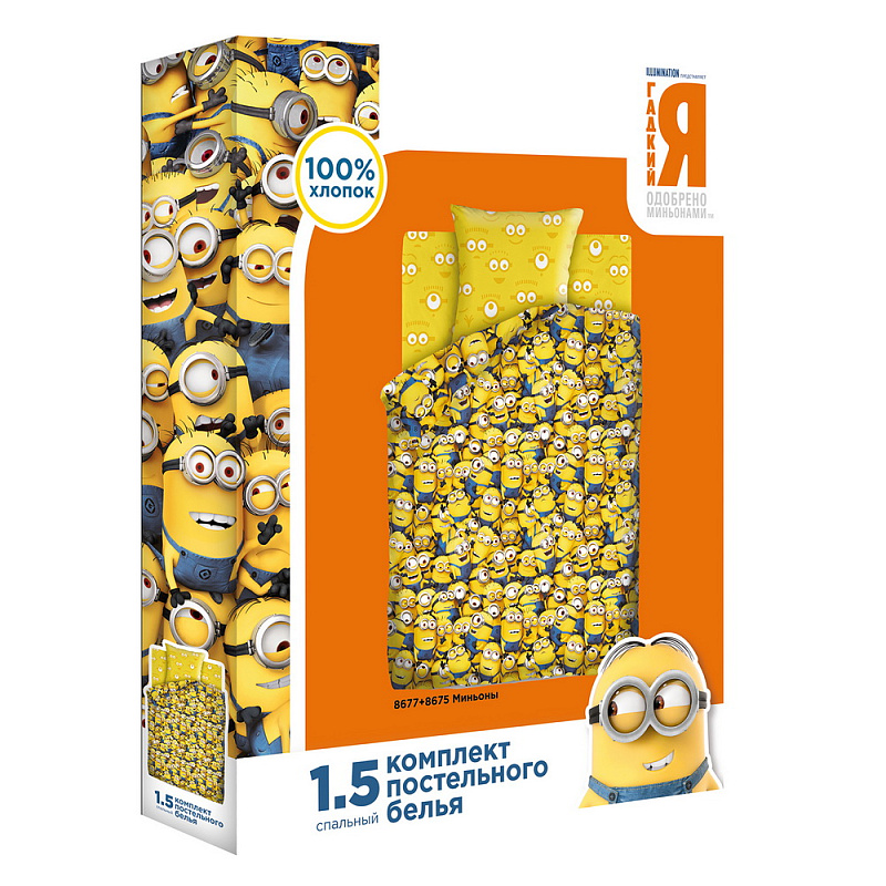 Полуторный комплект постельного белья состоит из простыни, пододеяльника и наволочки. Выполнен из бязи (100%-го хлопка). Плотность ткани — 120 г/м.