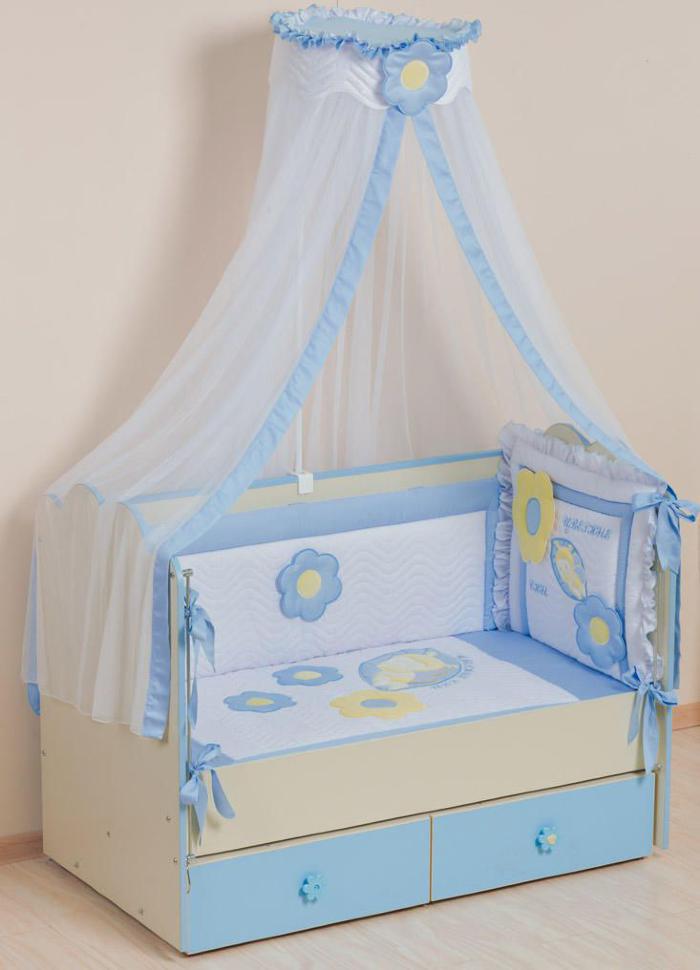 «Цветные сны» — комплект, выпущенный в России и сделанный из натурального хлопка, тюля и холлкона (наполнитель). Подарит малышу комфорт, цветные сны и хорошее настроение после пробуждения. Набор представлен в различных цветах.