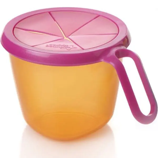 • удобная нескользящая ручка на крышечке предусмотрена для того, чтобы малыш мог самостоятельно держать контейнер в руках во время прогулки.