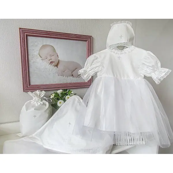 Крестильный комплект для девочки Makkaroni Kids Angel, 4 предмета — роскошный наряд для церемонии крещения