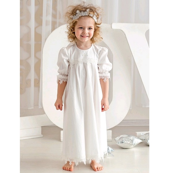 Элегантное длинное платье Варвара сшито специально для маленькой королевы. Этот изысканный наряд выполнен в светлой цветовой гамме. Рукава и нижняя часть изделия декорирована тонкими кружевами. Главное украшение — крестик из блестящих камушков.