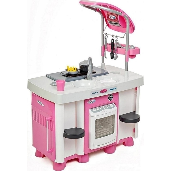 Девочки с большим удовольствием наблюдают за ежедневными хлопотами мамы на кухне. Им тоже хочется что-то печь, варить и тушить. Кухонный модуль Wader Coloma Carmen №7 поможет воплотить в реальность мечты маленькой принцессы. Варочная панель оснащена двумя конфорками. В сковородке можно жарить картошку фри, а в кастрюле — варить щи. Кран с мойкой позволит вымыть всю посуду после готовки. Если же тарелок слишком много, их можно поместить в посудомоечную машину. Реалистичность этого модуля, без сомнений, впечатлит ребенка: после нажатия на кнопку в посудомойке вода начинает разбрызгиваться между двумя прозрачными стенками дверки. При этом посуда остается сухой.