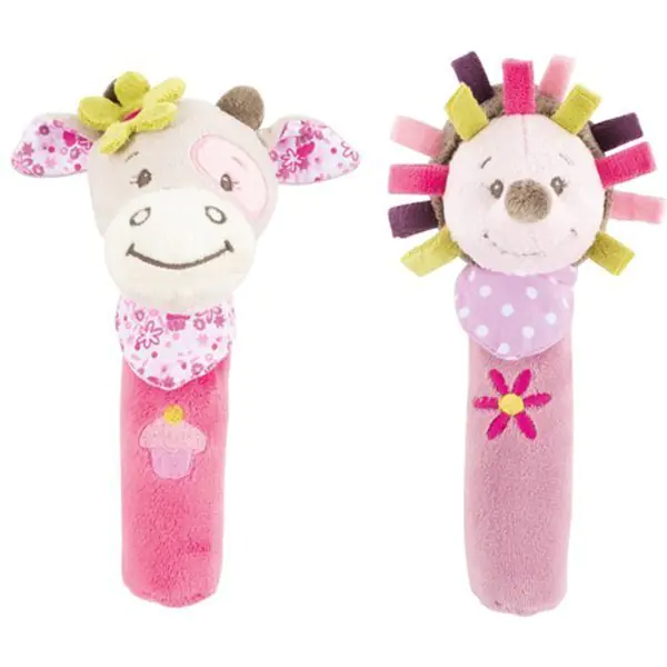 Выполненные в приятных розовых оттенках, эти животные-пищалки с симпатичными улыбчивыми мордашками станут любимой забавой вашей маленькой доченьки. Забавные мягкие игрушки Ёжик и Коровка названы в честь мультяшных персонажей, поэтому ребенок сможет придумывать с самые разнообразные сюжетно-ролевые игры с их непосредственным участием. Кроме того, вместе с мамой и папой дети смогут разыгрывать театральные представления, во время которых будут понимать, как важно дружить и выручать друг друга в разных ситуациях. Антиаллергенные мягкие игрушки Nattou Cri-Cris сшиты из разнофактурных мягких тканей, призванных развивать тактильные ощущения. Внутри изделий находятся пищалки, которые срабатывают при сжатии животного, поэтому дети учатся понимать причинно-следственные связи. Решив купить для своей дочурки мягкие игрушки Nattou Cri-Cris (Наттоу Кри Крис) Manon & Alizee Ёжика или Коровку за доступную цену, вы подарите ей увлекательный досуг, полный ярких впечатлений. Изделия отличаются первоклассным пошивом, поэтому будут радовать ваших деток долгое время.