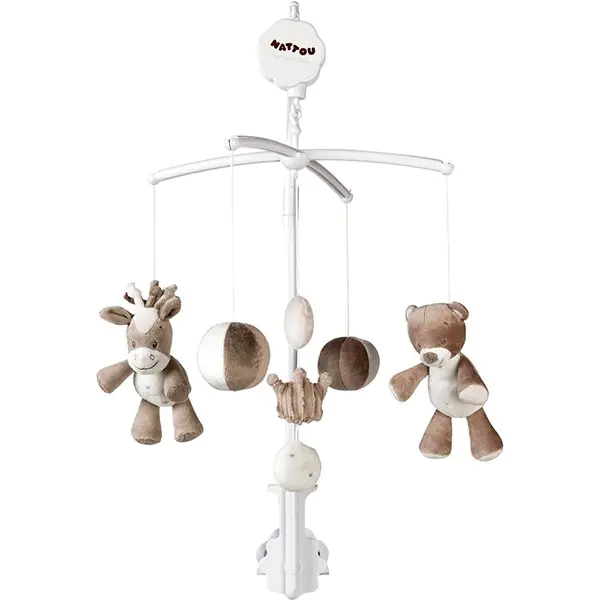 Универсальная коллекция для мальчиков и девочек выполнена в спокойных коричневых тонах. С ее главными героями малыш сможет познакомиться, увидев мобиль Nattou (Наттоу) Max, Noa & Tom Собачка, Лошадка, Мишка, на котором не спеша вокруг оси вращаются мишутка, лошадка и два мячика. При этом играет успокаивающая мелодия, которая убаюкивает ребенка и дарит ему безмятежный сон. Выполненный из экологически чистых материалов, мобиль Nattou (Наттоу) Max, Noa & Tom Собачка, Лошадка, Мишка можно купить по приемлемой цене уже сегодня. Фиксация изделия на бортике колыбели производится благодаря надежному крепежному комплекту.