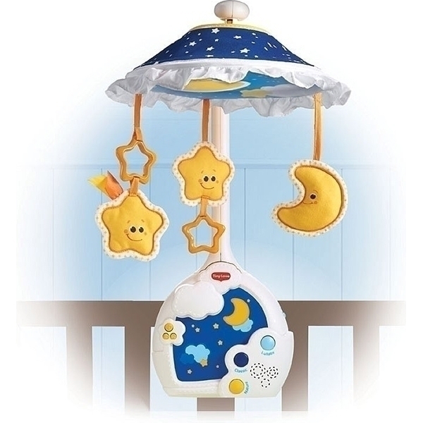 Израильский бренд представляет игрушку 3 в 1, которая растет вместе с малышом и радует его на разных этапах развития. Сначала мобиль с проектором Tiny Love Звездная ночь льет красочное изображение на купол. Новорожденный кроха внимательно рассматривает его, успокаивается и крепко засыпает. Когда карапузу исполнится четыре месяца, он сможет рассматривать изображения звезд на потолке. Картинка плавно вращается по кругу под одну из девяти мелодий. Для детей старше года эта модель выступает в качестве удобного ночника с приятным мягким светом.