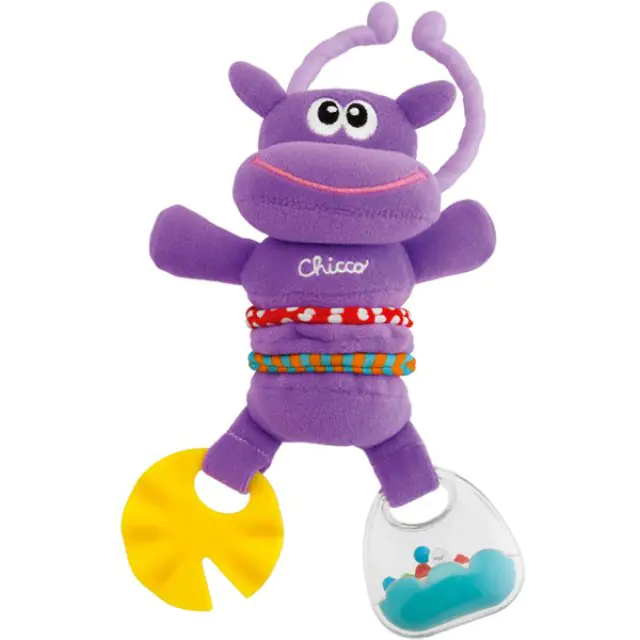 С погремушкой и прорезывателем – музыкальная игрушка Chicco (Чико) Веселый бегемотик с вибро