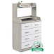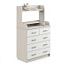 В этом комоде пять ящиков — три широких нижних и два верхних, которые в ширину равны нижним ящикам. Ящики находятся на шариковых телескопических направляющих, а значит работают плавно, без шума, не выезжают произвольно. Наверху оборудован пеленальный столик. Рядом — отделение для средств по уходу за ребенком. С полки предметы не скатываются благодаря ограничителю.