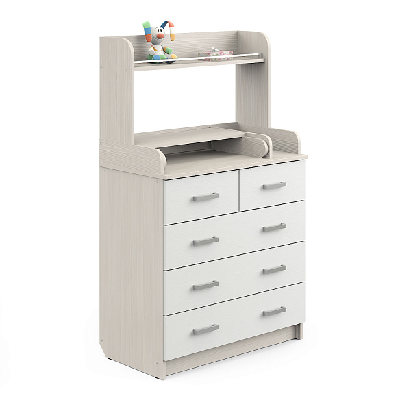 Комод выделяется надстройкой с полкой и солидным выбором оттенков. Выполнен из ЛДСП, тщательно обработан и отделан для полной безопасности ребенка. Впишется в любой интерьер детской комнаты, спальни или уголка в жилой комнате.