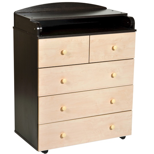 Комод дополнен пеленальным столиком, оборудованным на верхней части комода. Пеленальная поверхность удобная и безопасная, позволяет маме пеленать, переодевать ребенка, проводить гигиенические процедуры, делать массаж.