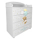 Мебель российского производства под маркой знаменитого бренда Indigo. Из-готовлен из ламинированной ДСП, состоит из четырех вместительных выдвижных ящиков. В комплект входит удобная пеленальная доска. Ящики безопасные, ходят на шариковых направляющих. Выполнен в белом цвете с изображениями милых сказочных животных. Для удобства родителей оборудован мобильными колесика-ми с фиксацией.