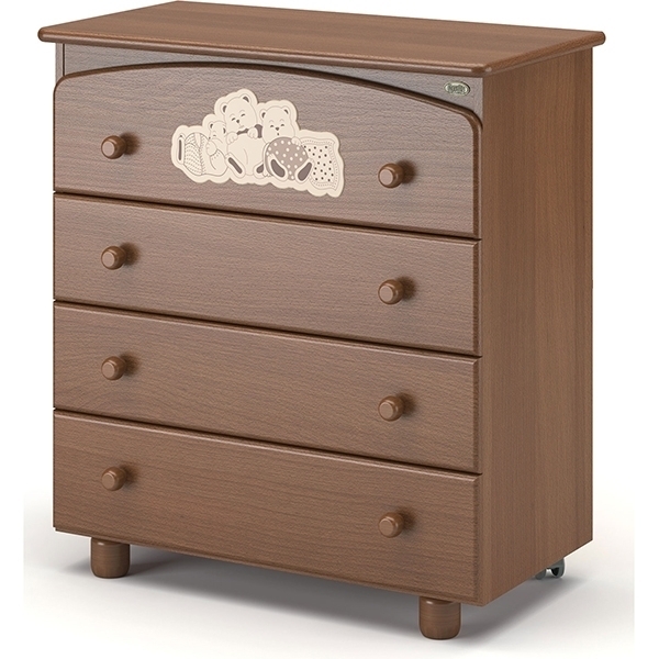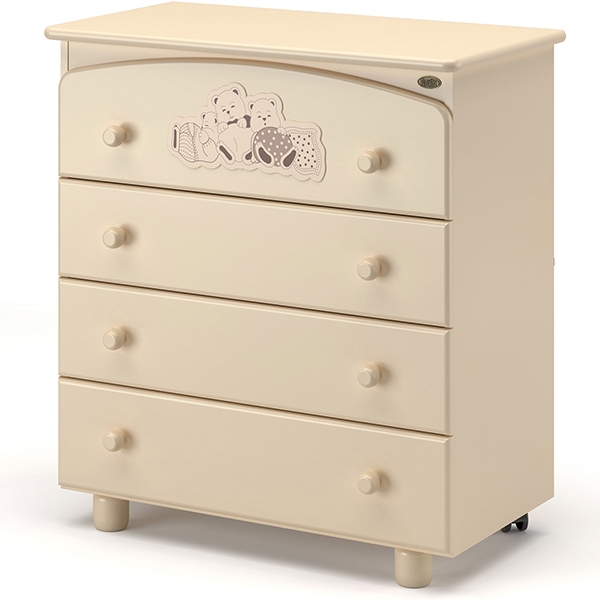 Комод Грано в классическом стиле украшает красивая детская аппликация, основные материалы его изготовления — натуральный древесный массив, качественные ЛДСП и ХДФ. Основание дополнено небольшими колесами для легкого передвижения мебели по комнате.