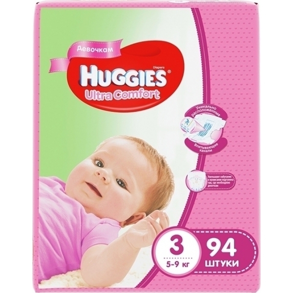 Подгузники для девочек Huggies Ultra Comfort 3, 5-9 кг, 94 штуки