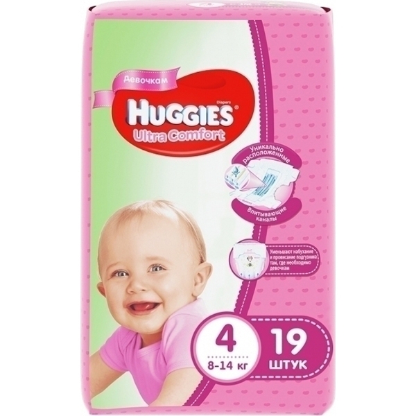 Благодаря широкому суперэластичному поясу изделие хорошо сидит на малышке и предотвращает протекание жидкости. Анатомическая форма подгузника предотвращает натирание между ножками. Мягкий внутренний слой оберегает сверхчувствительную кожу от раздражения. Дышащие материалы хорошо пропускают воздух, исключая образование «парникового эффекта». Подгузники для девочек Huggies Ultra Comfort 4 получили уникальный слой, впитывающий жидкость всего за несколько секунд. Специальные каналы обеспечивают равномерное распределение влаги по изделию, исключая его провисание. Каждый аксессуар украшают забавные персонажи Дисней.