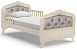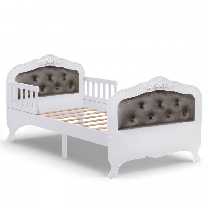 Для ребенка комфортно спать на мягкой и одновременно плоской поверхности. Ложе в кровати просторное, ребенку будет свободно и комфортно отдыхать. Особенность дизайна — мягкая отделка торцевых частей. Кровать прослужит долго и будет украшением детской комнаты.