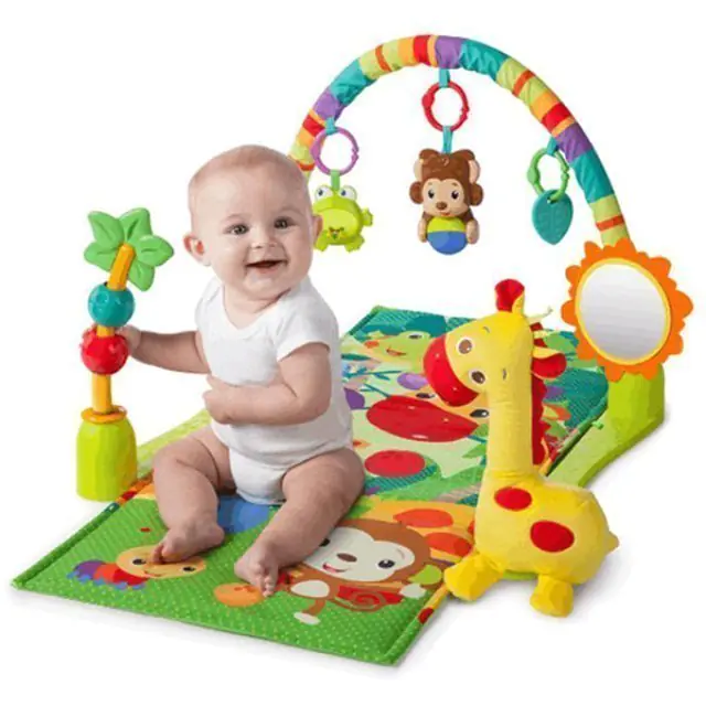 Оснащен целым комплексом игровых элементов – развивающий коврик Bright Starts (Брайт Стартс) Джунгли 52275