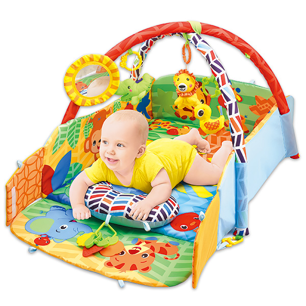Создать уютную зону для развлечений и отдыха прямо в детской комнате совершенно не сложно. С красочным развивающим ковриком для новорожденного Funkids 3 Ways To Play маме не придется думать о том, чем развлечь малыша. Здесь есть все, что нужно для хорошего настроения непоседы — забавные мягкие игрушки, подушечка, безопасное зеркальце. Кроха с этим ковриком научится различать цвета и разную фактуру тканей, с интересом станет разглядывать яркие изображения и сможет наслаждаться чудесными мелодиями.