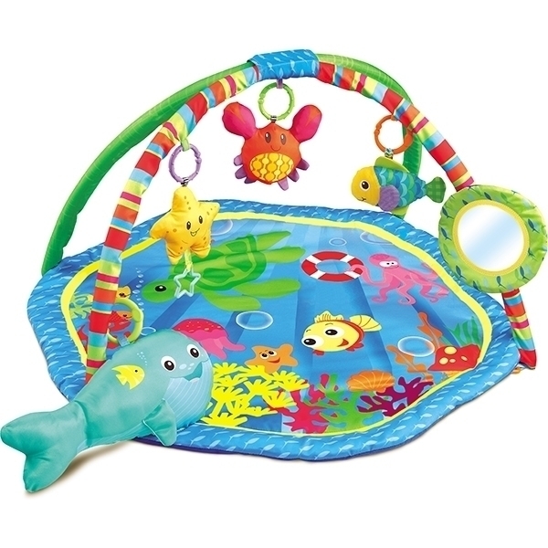 Как ребенку можно узнавать окружающий мир и делать новые открытия? С красочным развивающим ковриком для новорожденного Funkids Ocean Activity Gym каждый день малыша будет наполнен радостными эмоциями. Кроха с любопытством будет изучать яркие картинки с обитателями океана, тянуться ручками к подвесным игрушкам и смотреть на свое отражение в зеркальце. А большую мягкую рыбку можно использовать в качестве подушечки-позиционера.