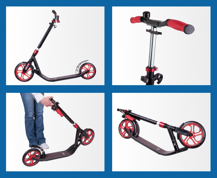 Самокат Hudora CLVR имеет регулируемый руль с максимальной высотой 112,5 см, что делает его отличным выбором для людей ростом 1,8 м и выше. Удобное управление гонщику обеспечивают эргономичные рукоятки со специальными накладками, которые не скользят и не вибрируют в руках. Еще один плюс модели — новый складной механизм, благодаря которому самокат складывается за пару секунд и легко переносится.