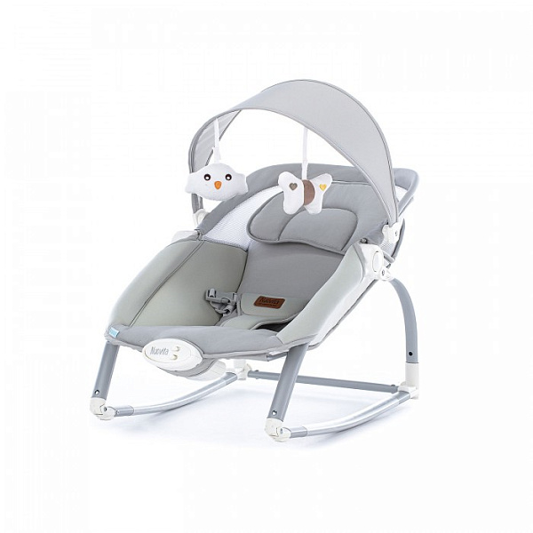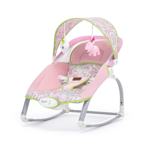 Шезлонг Nuovita Mese с функцией качания выпущен в 2021 году. Это уютное и компактное приспособление помогает родителям развлекать, успокаивать и убаюкивать новорожденного ребенка. Устройство украшают подвешенные на дуге-козырьке мягкие игрушки, развивающие малыша.