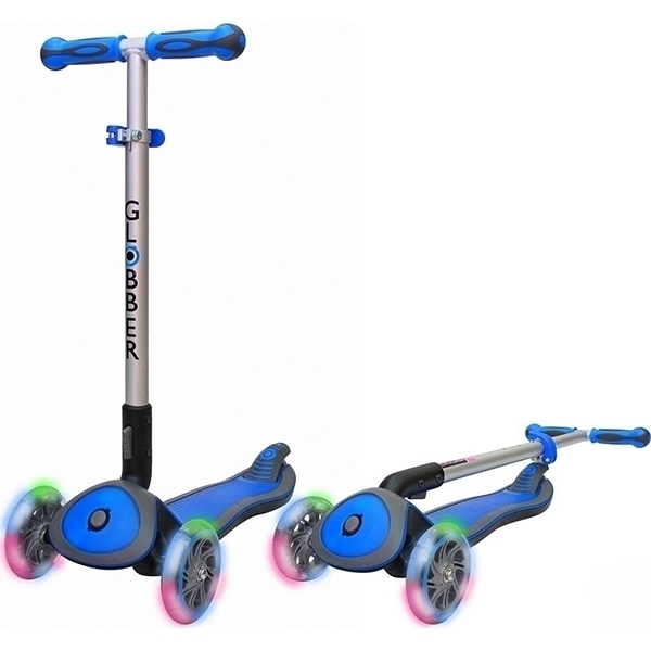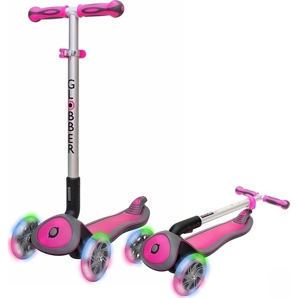 Трехколесный самокат Globber Elite SL My Free Fold Up 445 (Глоббер Элит СЛ Май Фри Фолд Ап) с регулируемым рулем и светящимися колесами