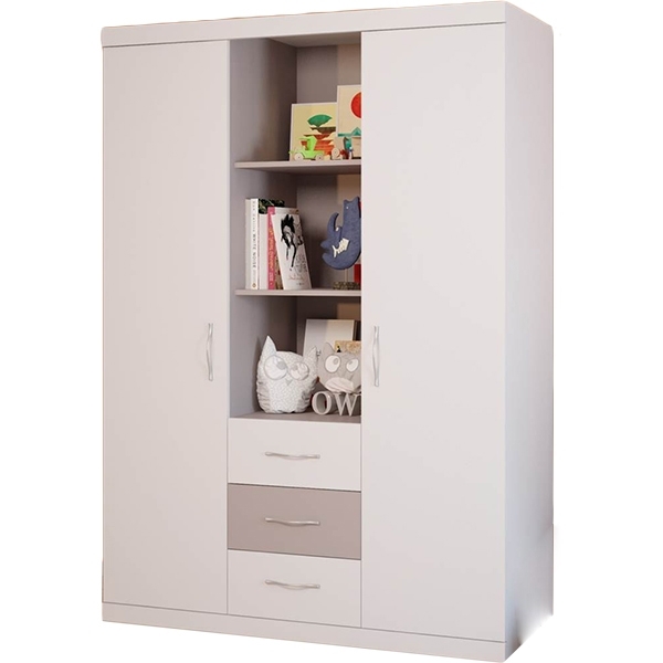 Этот элегантный предмет мебели из классической коллекции российского бренда станет великолепным украшением спальни ребенка. Он состоит из трех больших отделений, которые обеспечат бережное и аккуратное хранение детских вещей. В первом отделении находится штанга для вешалок. Здесь вы сможете размещать верхнюю и нарядную одежду карапуза. Во второй секции находится пять полок для нижнего белья и вещей, которые хранятся в сложенном виде. По центру расположен открытый стеллаж с полками и ящиками для книг и игрушек.