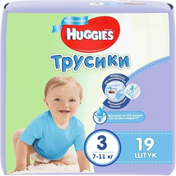 Трусики-подгузники для мальчиков Huggies 3, 7-11 кг, 19 штук