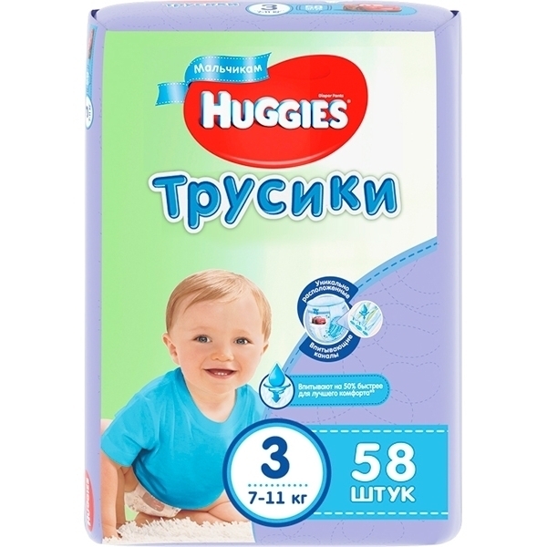 Трусики-подгузники для мальчиков Huggies 3, 7-11 кг, 58 штук