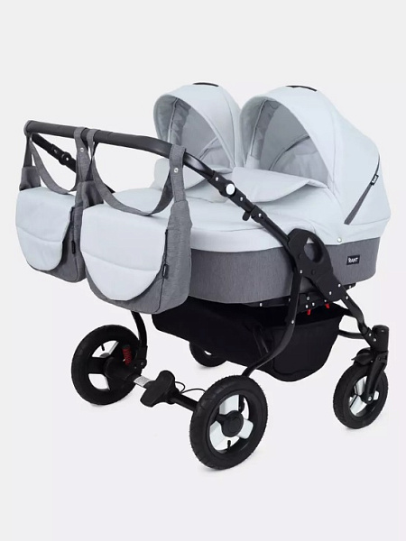 Универсальная коляска Rant Dream Duo оснащена парой люлек, прогулочных блоков и сумок для мамы. Отличный «вездеход» для двоих детей.