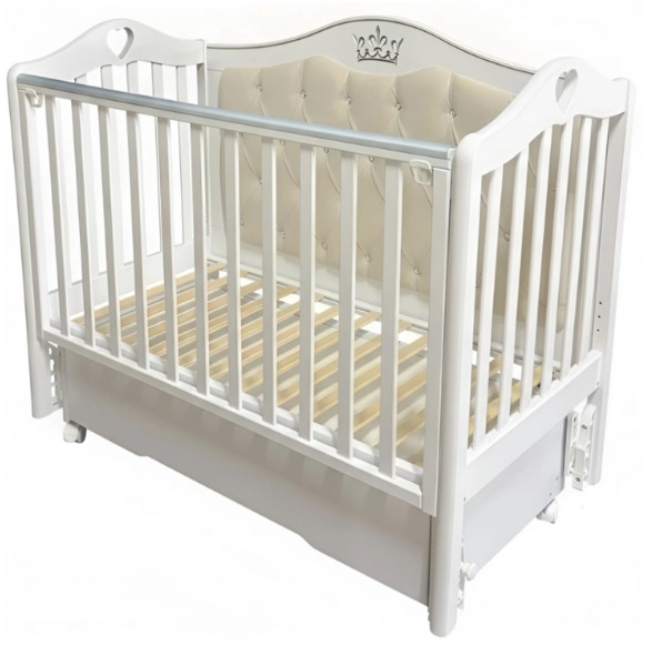 Детская кроватка Дарина‑4 с мягкой спинкой, универсальным маятником, колесами, автостенкой и выдвижным ящиком — это классическая модель для новорожденных, в которой к базовой функциональности добавлен повышенный комфорт и удобная система хранения. Мягкое изголовье делает конструкцию визуально более уютной и добавляет защиты ребенку: при активных движениях малыш соприкасается не с жесткой спинкой, а с обитой поверхностью.