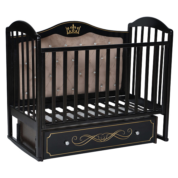 Представляем стильную новинку Emily 4 — детскую кроватку с мягкой задней стенкой, которая обита тканью из велюра, и патиной, на которой изображена корона. Кроватка укомплектована универсальным маятниковым устройством: вы можете сами решить, какое качание — продольное или поперечное — больше подойдет вашему ребенку. При этом кроватка «Эмили» 4 может использоваться и без маятника, на ножках. Маятник можно не снимать, а зафиксировать, чтобы кроватка не качалась.